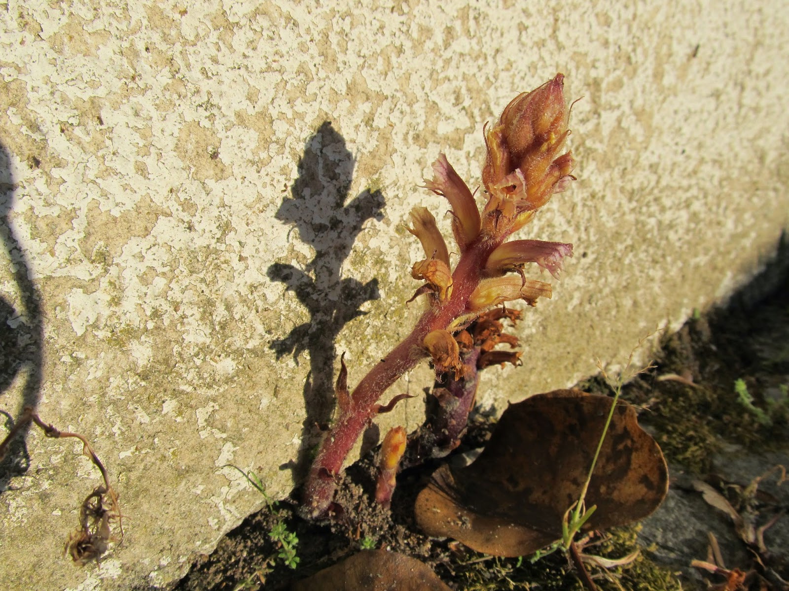 Fotografámos recentemente esta curiosa planta parasita das heras (Hedera sp., Araliaceae): Orobanche hederae Duby, Bot. Gall.: 350. 1828 (Orobanchaceae), brotando por entre as pedras da calçada e aproveitando as recentes chuvas da Primavera, junto a um muro.