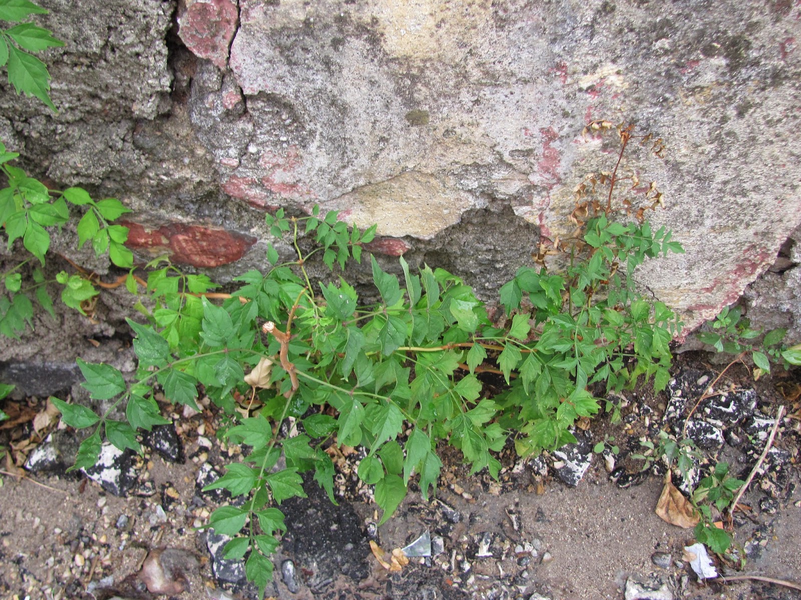 Mais uma planta que fotografámos hoje, em Coimbra, 29TNE4950, at. ca. 60 m: parece ser talvez a Campsis grandiflora (Thunb.) K. Schum. = Bignonia grandiflora Thunb. (basiónimo), uma Bignoniácea exótica trepadeira, já subespontânea ou escapada de cultura em locais ruderais como muros velhos...