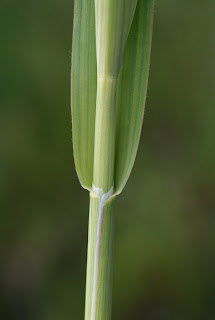 A) Triticum aestivum «trigo-mole», aurículas pilosas que abraçam o caule; B) Avena sativa «aveia-comum», sem aurículas; C) Hordeum vulgare «cevada», aurículas glabras (sem pêlos) que abraçam o caule; D) Secale cereale «centeio», aurículas curtas que não chegam a abraçar o caule . N.b. as aurículas são pequenas expansões lineares, situadas no encontro entre o limbo e a bainha; supõe-se que tenham por função dificultar a abertura da bainha, por exemplo pela acção do vento, e desse modo impedir a entrada de água e parasitas para o espaço entre a bainha e o caule. Imagem extraída das "Noções sobre a Morfologia Externa das Plantas Superiores", do Prof. João de Carvalho e Vasconcellos (1969)