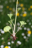 Saxifraga granulata (Saxifragaceae), uma espécie acidófila frequente em prados, taludes e margens de caminhos. Na segunda foto observam-se bolbilhos na base da planta; cada bolbilho pode dar origem a uma nova planta.