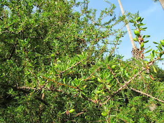 Aqui fica mais uma planta fascinante, um arbusto de origem norte-africana (Marrocos), cujos frutos consta serem apreciados pelas cabras (fotos: 9.IX.2013, Jardim Botânico de Palermo):