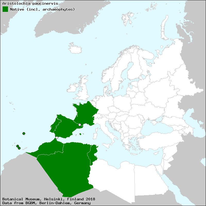 Região Mediterrânica Ocidental (http://euromed.luomus.fi/euromed_map.php?taxon=350937&size=medium), que em Portugal continental é frequente (http://flora-on.pt/#/1Aristolochia+paucinervis), disperso por quase todo o País.