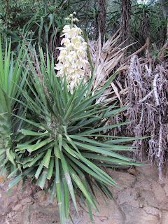 Yucca aloifolia L. (Asparagaceae), um pequeno arbusto exótico de folhas picantes, aqui em plena floração estival; e