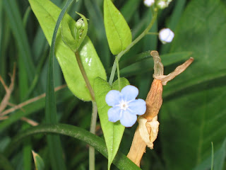 Ainda aqui não tinha aparecido esta simpática Boraginácea: Omphalodes nitida Hoffmanns. & Link, Fl. Portug. 1: 194, t. 25. 1811, que se pode encontrar habitualmente em orlas de bosques em sítios sombrios e frescos da ordem Origanetalia vulgaris Th. Müll. 1962, pertencente à classe TRIFOLIO MEDII-GERANIETEA SANGUINEI Th. Müll. 1962, cujo nome correcto é Trifolio-Geranietea Th. Müll. 1962, de acordo com SYNSYSTÈME DE LA FRANCE.